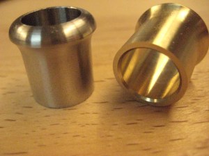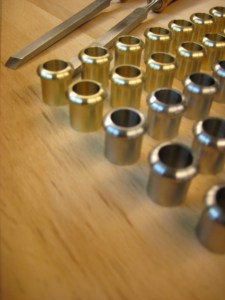 The Chisel Ferrules are here.  It looks like the prototype ferrules made for the James Swan Chisel were not Aluminum Bronze (not sure what the material was).  The new chisel ferrules are made of 100% Aluminum Bronze and 316 Stainless.  I have run 25 of the Aluminum Bronze and 25 of the stainless. The internal diameter of the ferrule is 1/2″ and the over all length is 3/4″.   I have gotten my price point down to $8.00 each + shipping (what ever USPS method you choose).